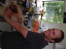 Ralphy is busy butchering some hind leg and dropping the cuts into a marinade he’s whipped up.
