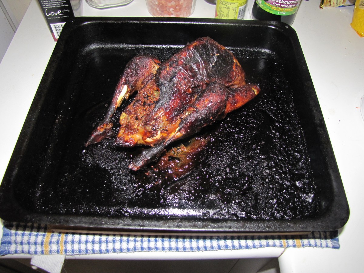 The cooked guinea fowl- looked burnt, but isn’t! (over cooked..)