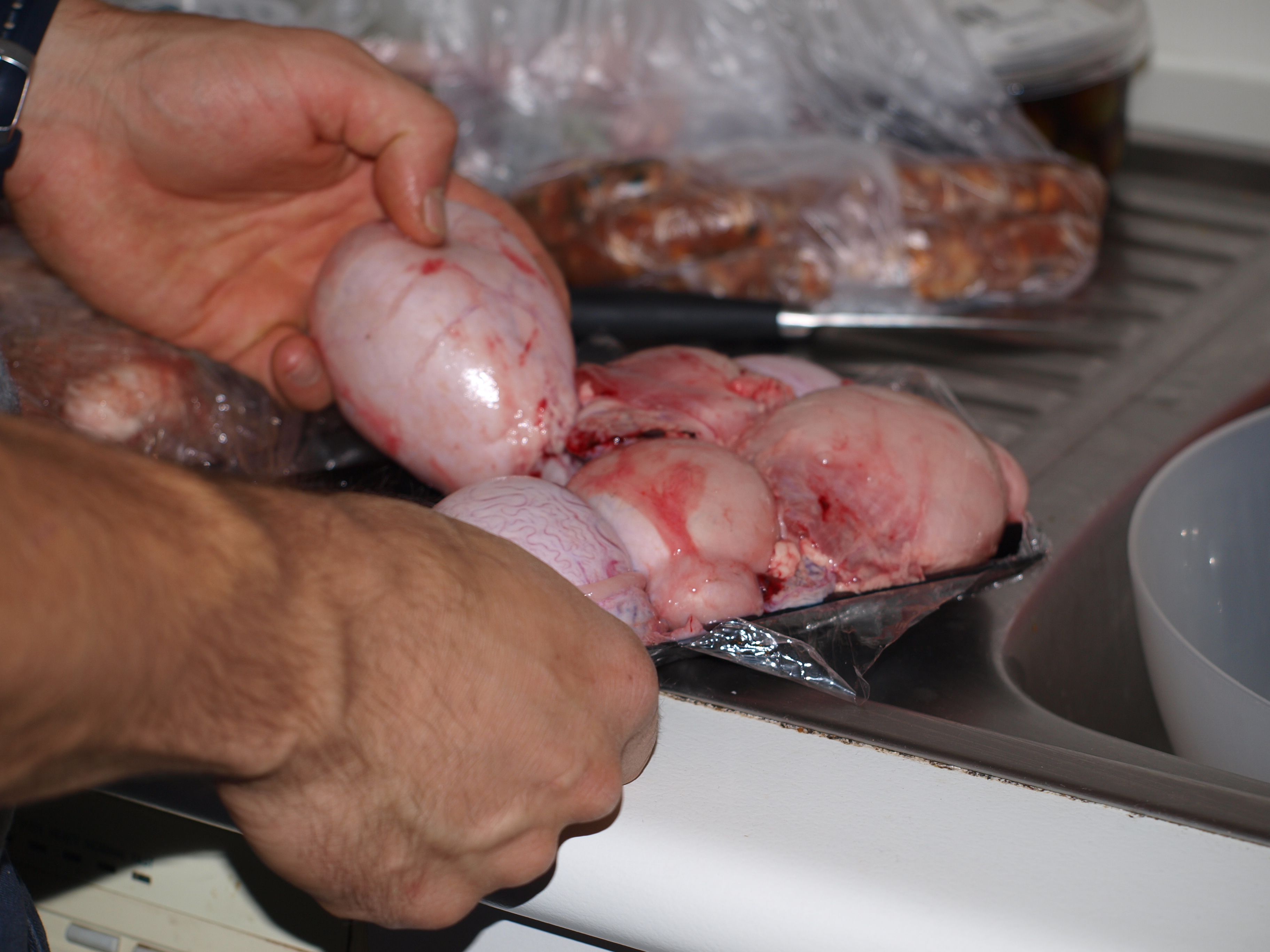 I had studied my recipe books and the internet briefly on how to do these two ‘delicacies’ and I had decided to use a recipe I had for brains and treat the balls the same way, whilst making a couple of small adjustments of my own. The end result of this planning was that I was going to have to allow considerable time to let these brains and testes mature to a ready state. They needed to reach their dinner puberty you might say…