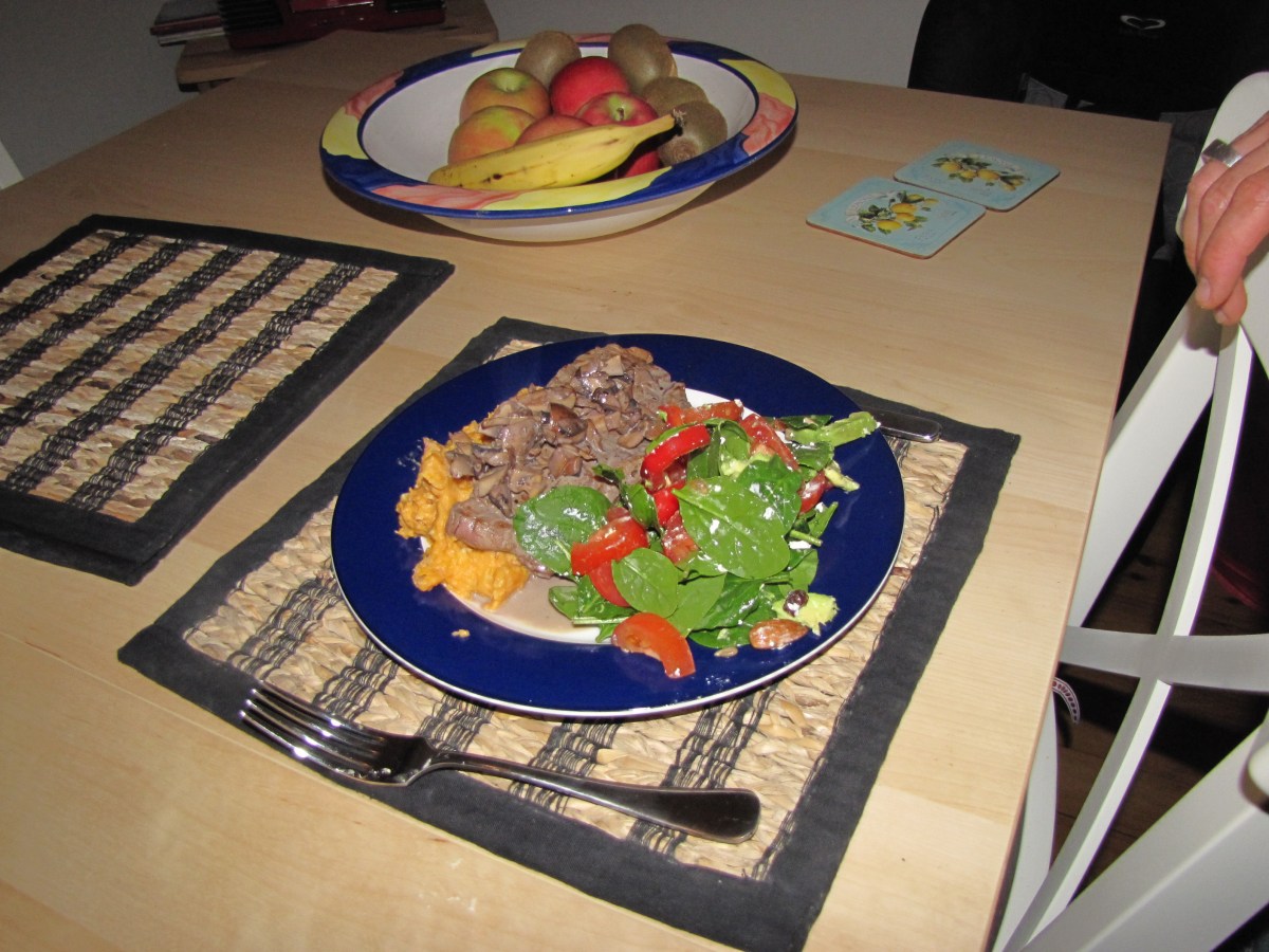 The buffalo with salad and creamy kumara & carrot mash
