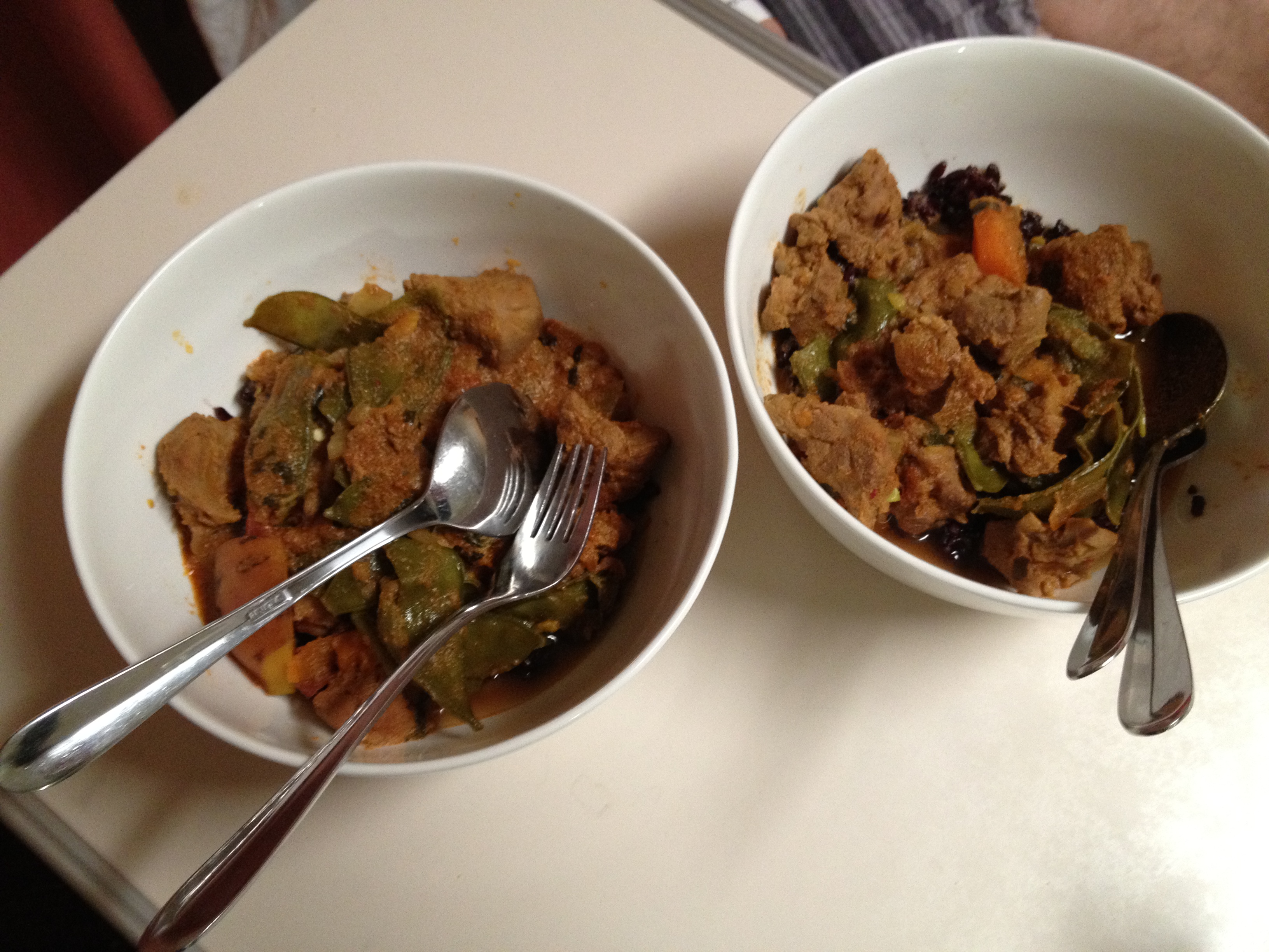 Plans changed around the dining part so I decided to pack servings for dad and I and head off to enjoy the curry with the man responsible for getting me this little swine, a much better option for dinner in the end!