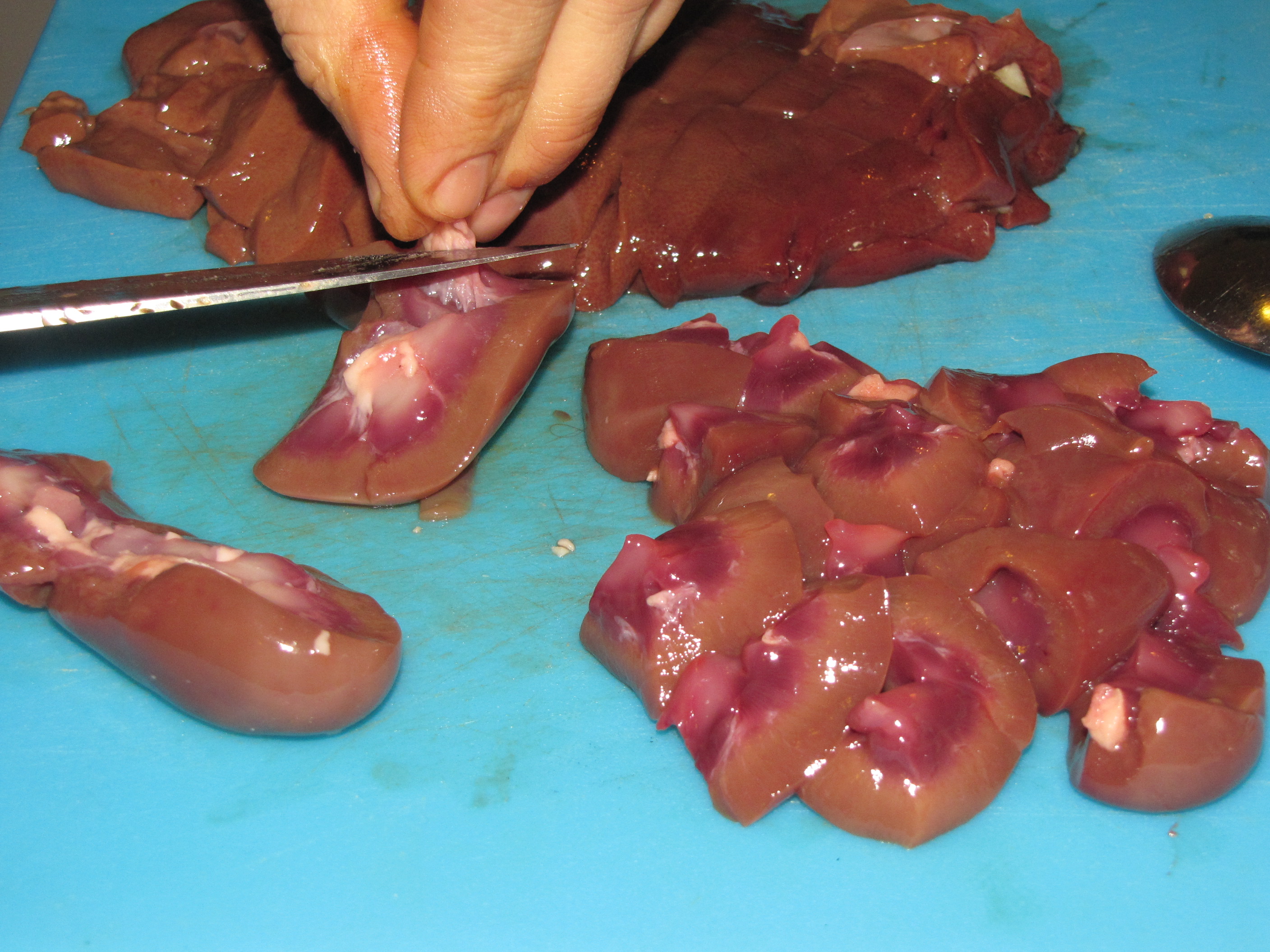 - Slicing the liver and kidneys (there was about 6 kidneys!) into thin strips,