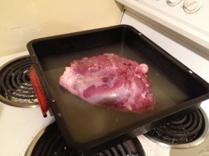 After a day of communicating with friends and family and managing the adrenalin rush and crash I got the ginormous hind leg roast in the oven for the few people in attendance. I added some salt, pepper, white wine and stock to flavour and keep moist, covered and into the oven to cook slowly.
