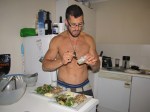 The ingredients of garlic, salt, lemon juice egg whites and extra virgin olive oil separated and became a sloppy waste. But the second time round I killed it. The consistency was perfect! However I somehow left ingredients all over the kitchen and oil all over my t-shirt!