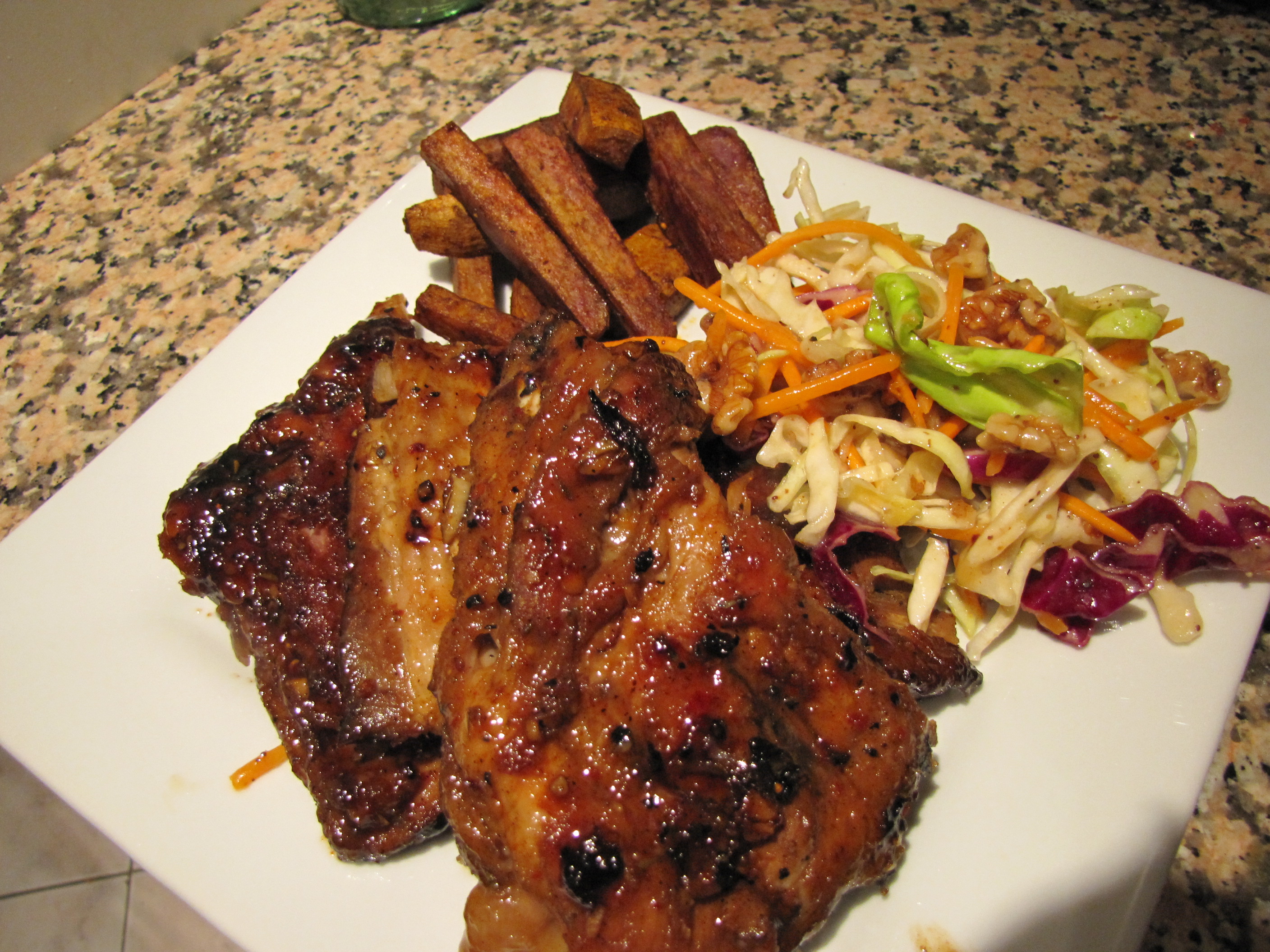 This did not falter and soon NN and I were digging into a feed of Mike’s spicy rib’s with Hawaiian kumara chips and homemade coleslaw. When I say digging in I’m not exaggerating, in fact I’m not doing it justice. I went to town on these ribs and hole-y f**k were they good!