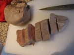 I went to searching my cook books for recipes and found some common ground with cooked and then cooled tongue. So I got busy cooking the tongue in a stock for a few hours. Once this had simmered gently I let it cool in its stocky liquid until cold enough to make a surgical like incision and remove the skin. That in itself seems like a weird concept.