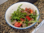 Once the time came I removed from the fridge and its stock, dried it and cut up the tongue into small chunks ready to be added to a lovely salad I had made.