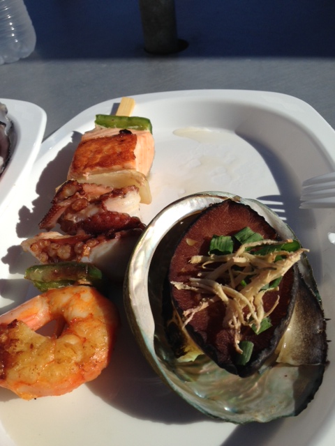 We wandered through and eventually chose one of the markets to buy a seafood platter, a fresh abalone, a seafood skewer and some grilled fresh red snapper fillet.
