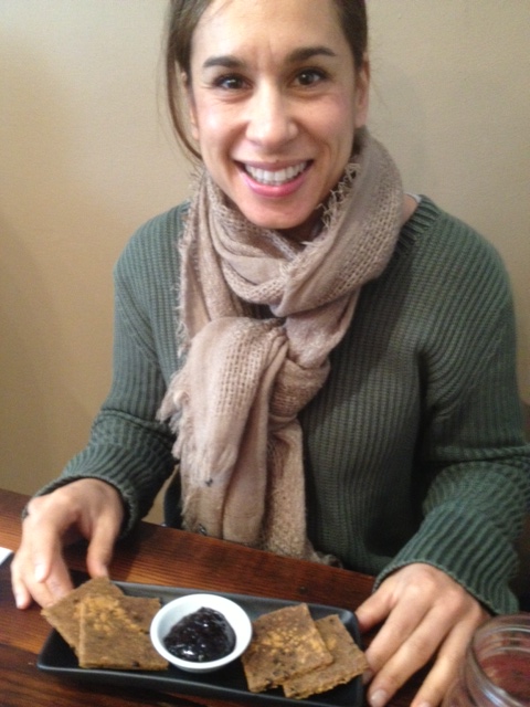 My toast and jam was delicious – the Cinnamon and raison ‘toast’ was made from dehydrated seeds/sprouts and was accompanied with a blueberry lavender chia jam. MC had the Apple cinnamon & cranberry porridge.