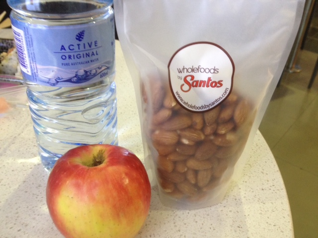 Most modern airports have access to ‘healthy options’ foods, such as salad and sandwich places, but when these aren’t available to you, get creative. Go to a few different places and purchase small items that when combined make up a decent meal. I was starving and needed a decent amount of protein, so after trawling through the different joints decided upon a tuna sushi dish. Knowing that MC would also come back from his ‘hunt’ with extra bits and pieces, I knew that this would suffice. I never had any intention of eating all the rice – I mainly wanted the protein. In the end though getting through all those pieces of tuna and sushi with extra nuts and an apple, made for a well balanced, healthy, satisfactory meal. Of course, it wasn’t cheap, my meal ended up costing over $20, however, as our food philosophy is about quality, $20 – big deal.