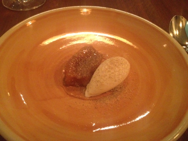 - Queensland pumpkin cooked in mead, with rice ice cream and white chocolate sauce