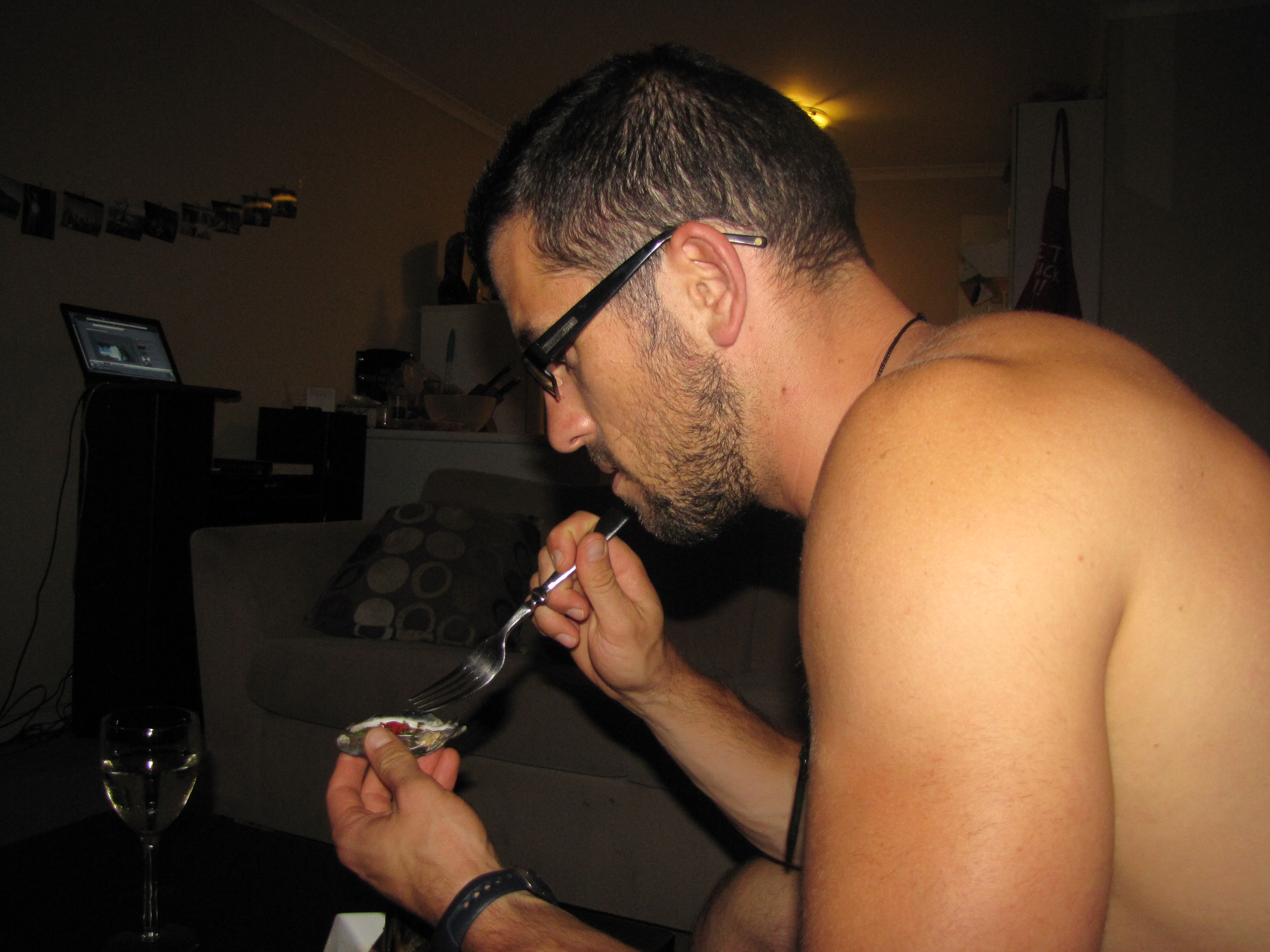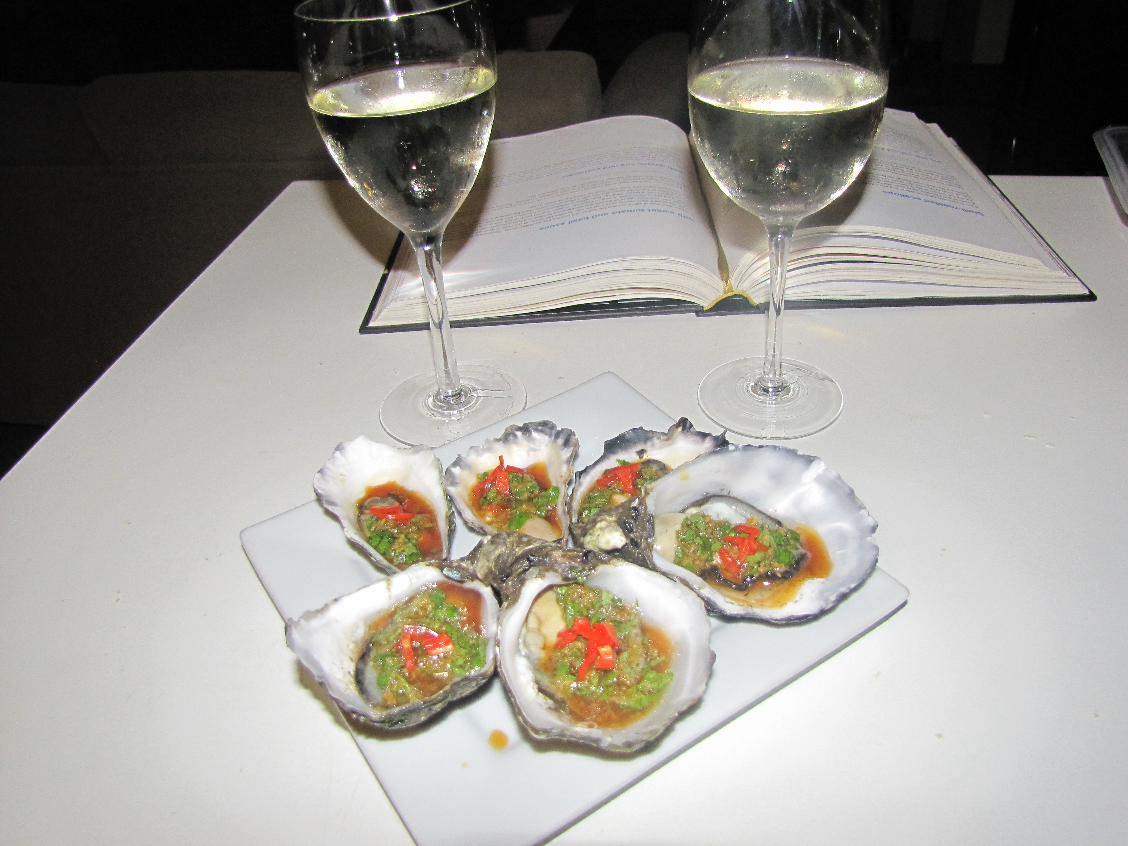 With everything ready to go I was hungry! So we dined. I started with an oyster.